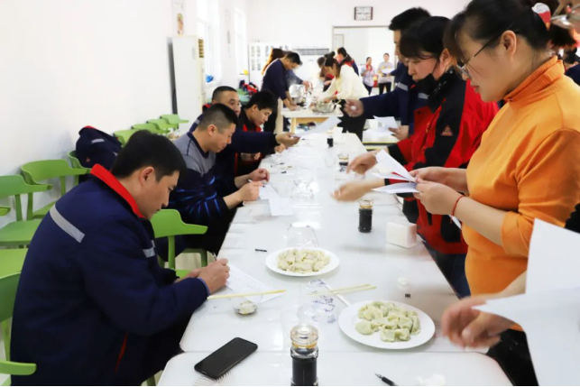 比賽按部門分組進行,共10個參賽組。每個參賽組包制兩種餡的餃子。賽前,參賽職工熱情高漲、摩拳擦掌,準備大顯身手。面粉、餡料、搟面杖、等一切準備就緒后,比賽正式開始。